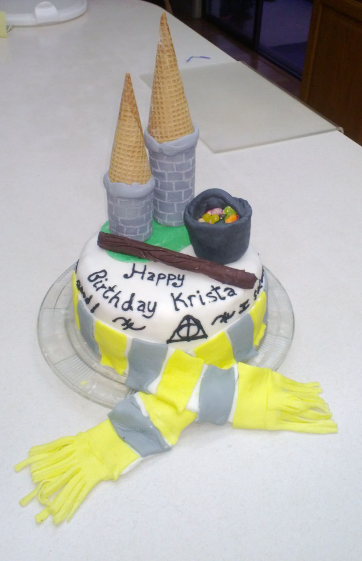 My second cake in January closely followed after the first. This Harry-Potter themed cake was my first attempt and making and using fondant.